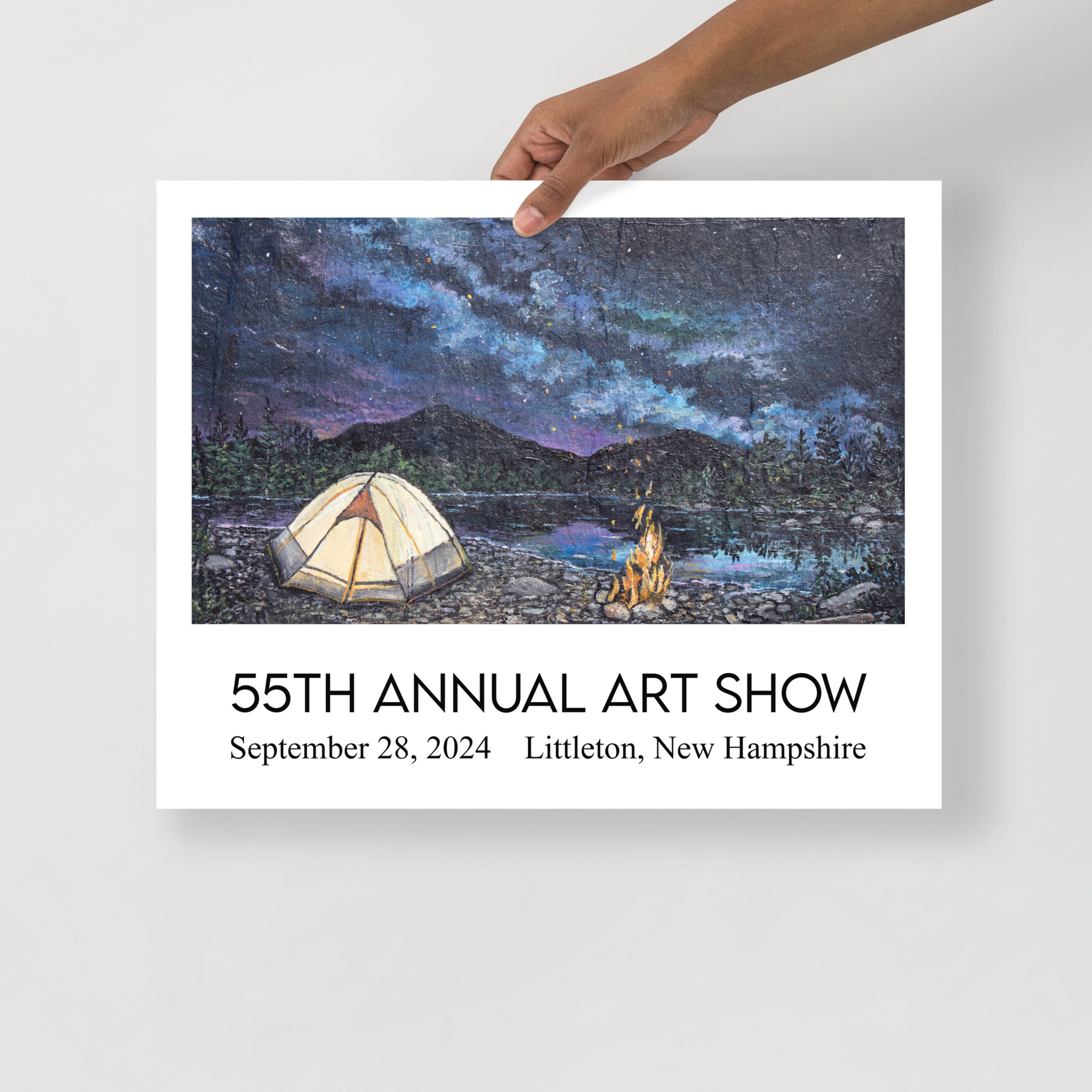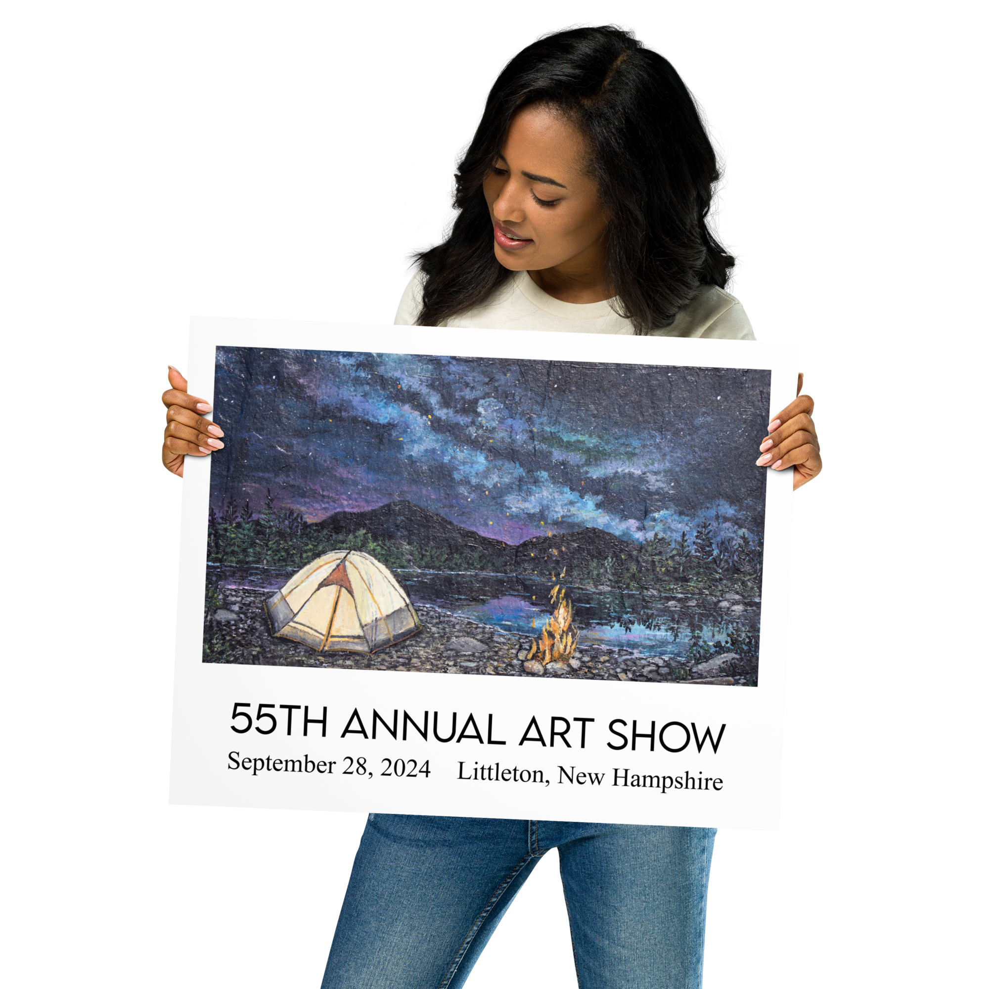 The 2024 Commemorative Littleton Art Show Poster featured “North Country Camping” by NH artist Stephanie Potter. Printed on museum-quality posters made on thick matte paper, this vibrant piece celebrates the beauty of Littleton and makes the perfect keepsake from the 55th Annual Littleton Art Show.